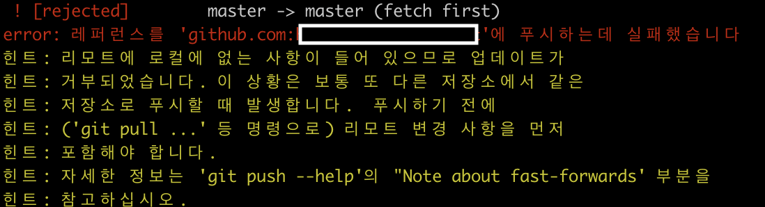 git에 push 하려던 상황에서 해당 에러를 만났는데요.